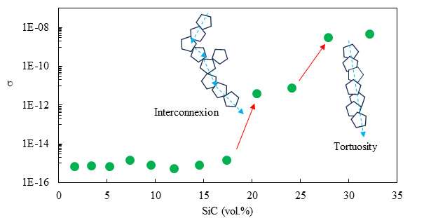 En effet, à partir d’un champ électrique seuil, la conductivité volumique augmente avec le champ électrique: σ =f(Eα), avec α > 4. Nous élaborons des diélectriques composites particulaires à matrice polydimethylsiloxane chargés de particules micro et nanocharges à base de carbone.