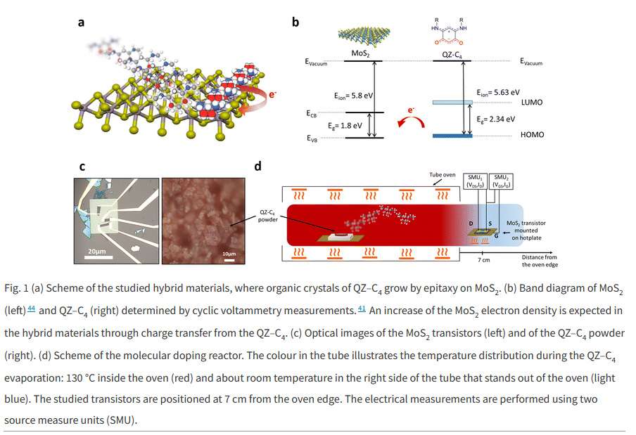 Au-delà des aspects caractérisation de nanostructures 2D une part importante de nos activités concerne l’étude des propriétés physiques de différents nanostructures 2D : graphène, dichalcogénures de métaux de transitions (TMD), hétérostructures 2D (graphène/hBN/TMD) et celles de matériaux hybrides : molécules organiques déposées sur une nanostructure 2D (Collaboration C2N Marseille dans le cadre d’une ANR) [3].