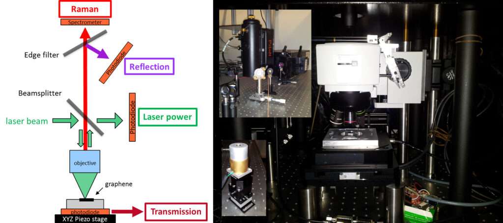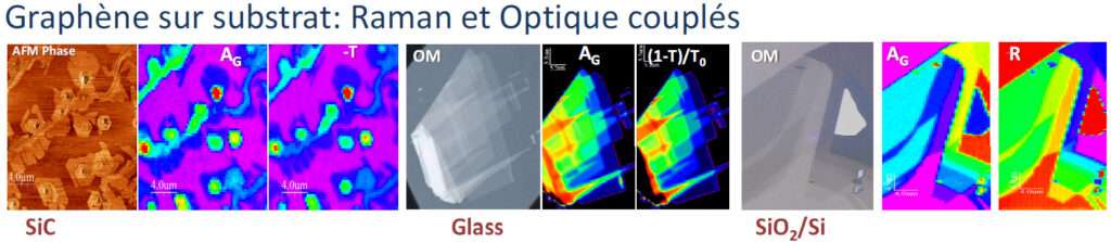 Ces montages permettent d’obtenir simultanément des cartographies (jusqu’à 2,5×2,5 cm²) de la diffusion Raman, de la réflexion et de la transmission des échantillons.