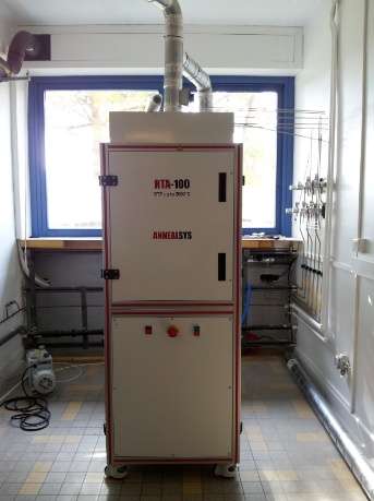 La croissance de graphène par sublimation du carbure de silicium (SiC) est réalisée dans un bâti prototype (HTA-100 d’Annealsys) sous faible pression d’argon. Il est possible d’utiliser le four en configuration Dépôt Chimique en phase Vapeur (CVD).