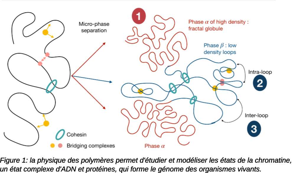- Physique du génome : modèles issus de la physique statistique et des polymères reliant l’architecture tridimensionnelle du génome des cellules eucaryotes, l’épigénétique et les mécanismes d’expression et régulation des gènes.